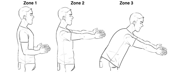ErgonomicsWhile Manitoba legislation does not specifically cite ergonomics, it does specify employer responsibilities in preventing musculoskeletal injury (MSI) in the Workplace Safety and Health Regulation (WSH Regulation) 217/2006 Part 8. Applying ergonomics accomplishes this.Ergonomics considers a human’s physical, physiological, biochemical and psychological capabilities when designing the workplace, equipment, product environment and the overall system. There are three considerations which all work together to create a safer and more comfortable work experience:The worker – human characteristics and capabilities, such as using proper lifting techniqueThe environment – temperature, lighting, and physical layout, such as clearing a pathwayThe tasks – use of tools, such as using equipment rather than manually liftingTo see what risks exist in your workplace, use the Ergonomics risk factor checklist.Ergonomic recommendationsOptimal heightsCertain categories of tasks are performed more optimally at some heights than others. Most work should be performed at about elbow height with a range of about 4″ above and below. Precision tasks should be performed at chest height, or about 7″-10″ higher. Heavier tasks should be performed at about hip height. Power rangeThe structure of our joints, muscles, and body allows the body to handle added force, weight or postures better in some ranges than others. The following diagram illustrates the principles of power range related to lifting, taking into consideration lifting range and horizontal reach.Working zonesWork should be set up to protect the back and shoulders, which are most vulnerable to injury. The back is most protected when the three spinal curves are preserved, and the shoulders are most protected when the upper arms are parallel to the person’s chest wall.When we consider the diagram below, the worker’s back and shoulders are in their most protected posture in zone 1. This zone is best for repetitive work tasks.When working in zone 2 the back remains protected, but now the shoulders are more vulnerable. Work in this position should be limited both in time spent and force exerted.Zone 3 puts the back and shoulders at the highest risk for injury. Once again, work in this position should be limited in time and force exerted. Related linksHealth and safety topic list